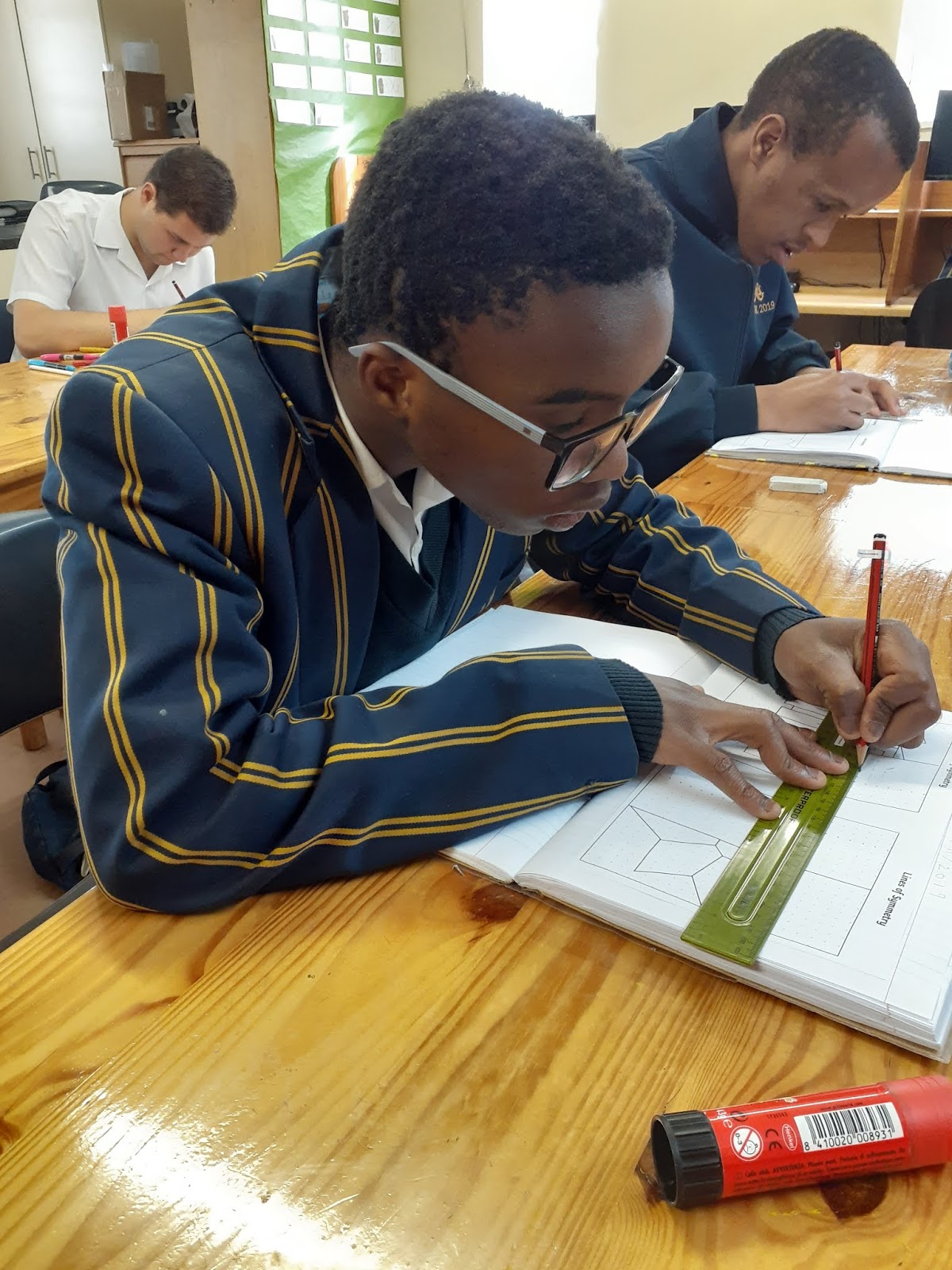 The boys were fully focused in trying to measure their shapes to make it symmetrical.