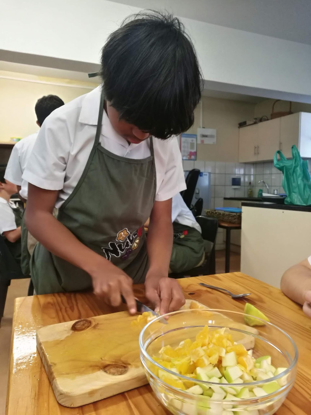 Today we had the opportunity to cut, peel, slice and enjoy making a healthy fruit salad.