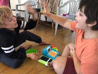 Apr 14 2020 Love0 Distance Learning: Playing ‘Shop’ with brother and sister. By blackzeb SNU, Uncategorized In between some online work, Matthew and his siblings practiced playing Shop keeper and Shopper. All the customers were very happy! ☺️☺️☺️